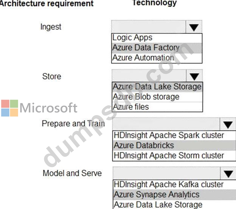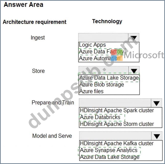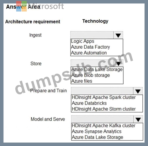 Which technologies should you use? To answer, select the appropriate options in the answer area.