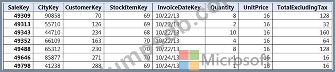 Incoming queries use the primary key SaleKey column to retrieve data as displayed in the following table: