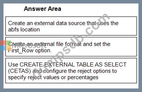 You are implementing a pattern that batch loads the files daily into an enterprise data warehouse in Azure Synapse Analytics by using PolyBase.