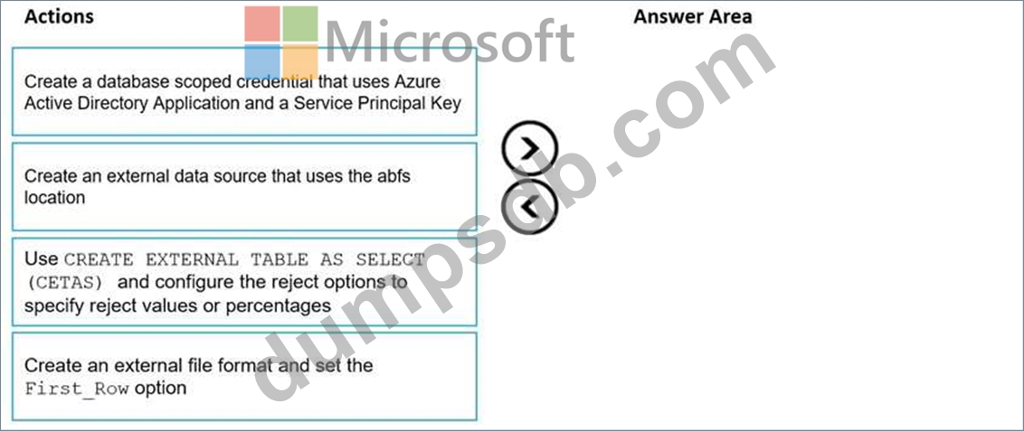 You need to skip the header row when you import the files into the data warehouse. Before building the loading pattern, you need to prepare the required database objects in Azure Synapse Analytics.