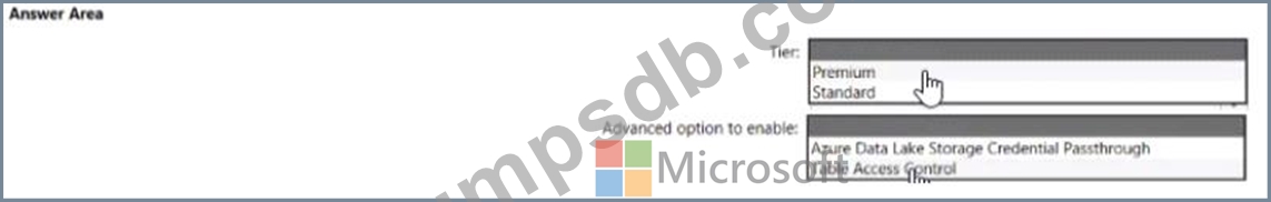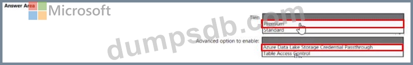 You need to implement an Azure Databricks cluster that automatically connects to Azure Data lake Storage Gen2 by using Azure Active Directory (Azure AD) integration. How should you configure the new clutter? To answer, select the appropriate options in the answers are a. NOTE: Each correct selection is worth one point.