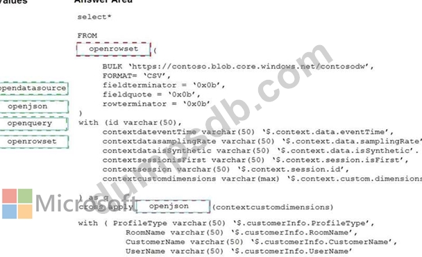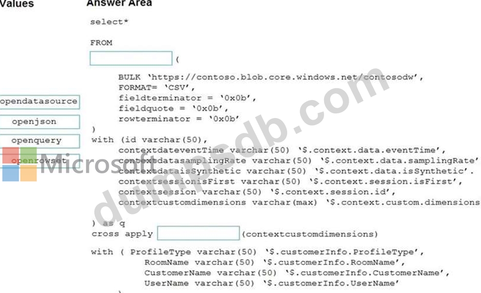 How should you complete the Transact-SQL statement? To answer, drag the appropriate values to the correct targets. Each value may be used once, more than once, or not at all. You may need to drag the split bar between panes or scroll to view content.