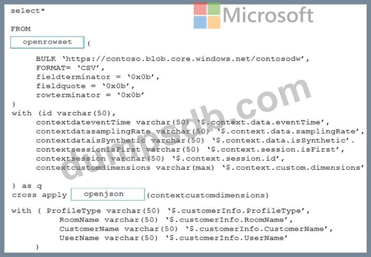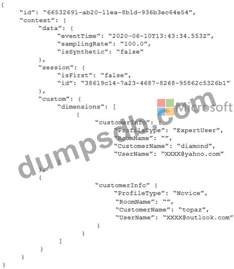 You have an Azure Data Lake Storage Gen2 container that contains JSON-formatted files in the following format.
