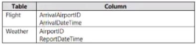 You have two fact tables named Flight and Weather. Queries targeting the tables will be based on the join between the following columns.