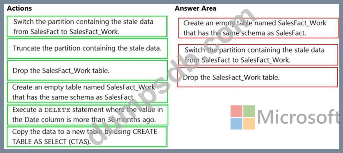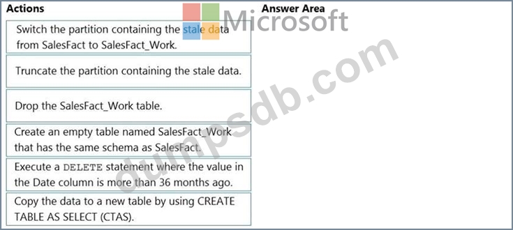 You have a table named SalesFact in an enterprise data warehouse in Azure Synapse Analytics. SalesFact contains sales data from the past 36 months and has the following characteristics: