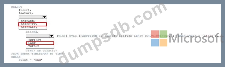 You are building an Azure Stream Analytics job to identify how much time a user spends interacting with a feature on a webpage.