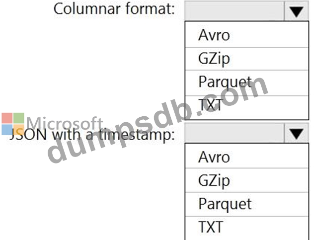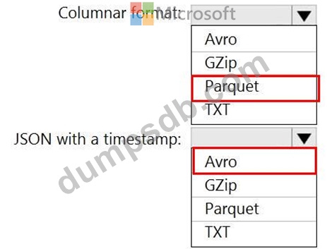 Which file format should you use for each type of output? To answer, select the appropriate options in the answer are a.