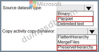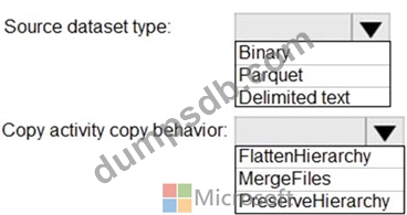 How should you configure the copy activity? To answer, select the appropriate options in the answer area.