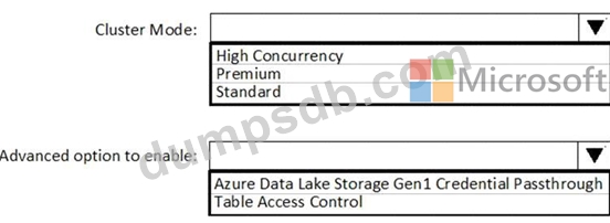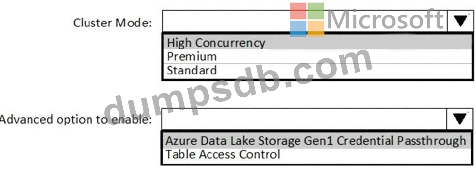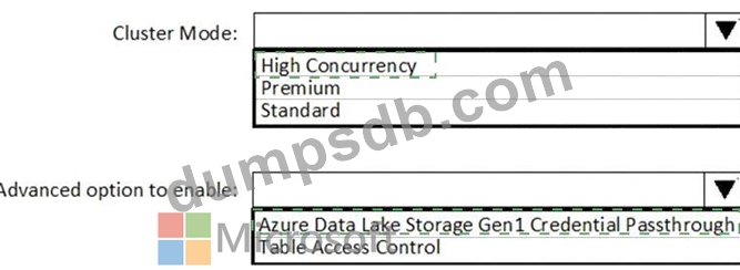 You need to implement an Azure Databricks cluster that automatically connects to Azure Data Lake Storage Gen2 by using Azure Active Directory (Azure AD) integration.
