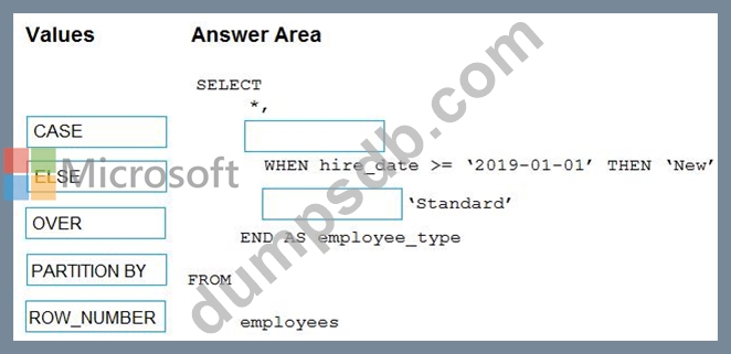 How should you complete the Transact-SQL statement? To answer, drag the appropriate values to the correct targets. Each value may be used once, more than once, or not at all. You may need to drag the split bar between panes or scroll to view content.