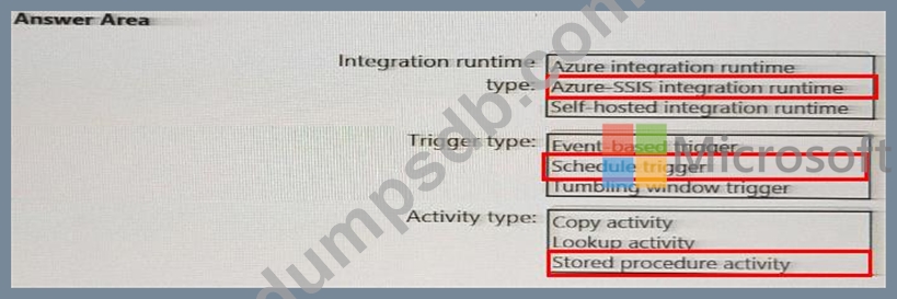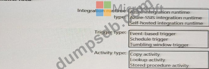 Which Azure Data Factory components should you recommend using together to import the daily inventory data from the SQL server to Azure Data Lake Storage? To answer, select the appropriate options in the answer area.