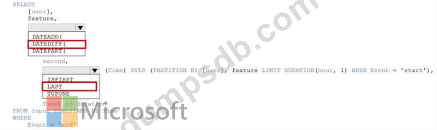 How should you complete the query? To answer, select the appropriate options in the answer area.