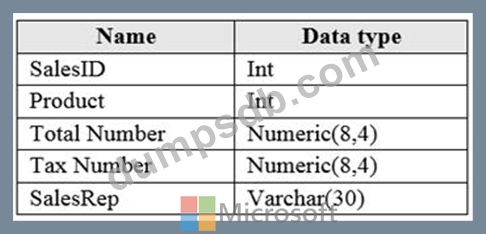 You have an Azure SQL database that contains a table named factSales. FactSales contains the columns shown in the following table.