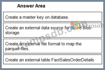 You must use PolyBase to retrieve data from Azure Blob storage that resides in parquet format and load the data into a large table called FactSalesOrderDetails.
