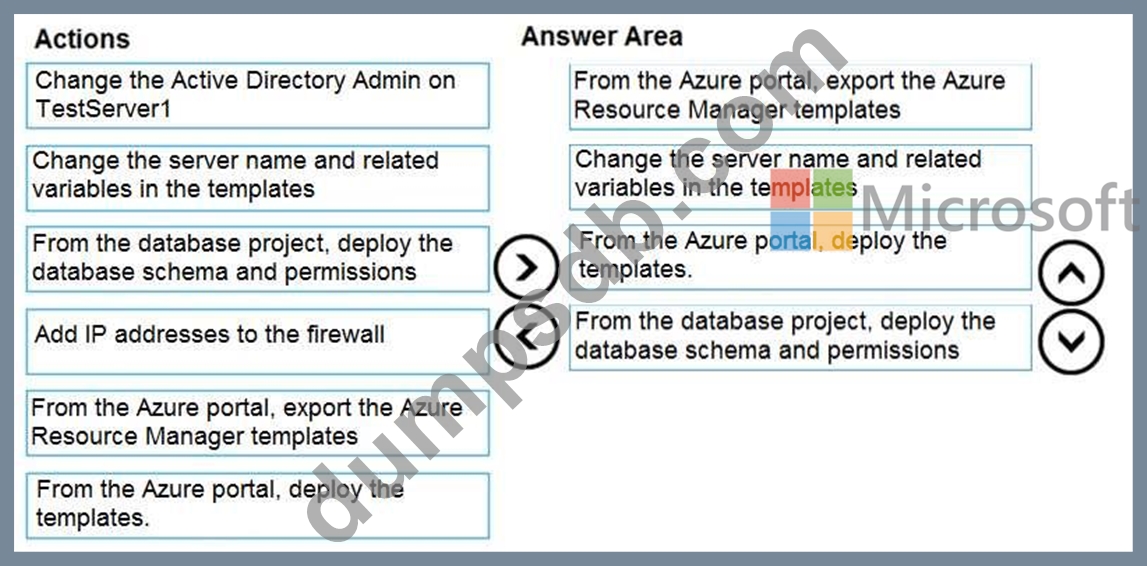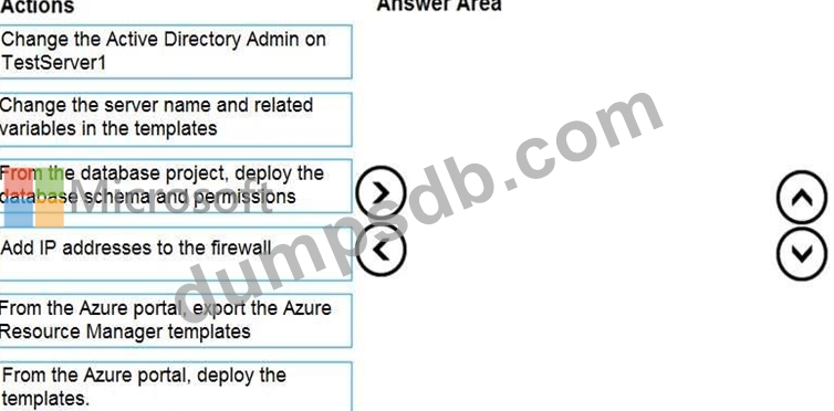 You need to populate a new resource group named App1Test with the DB1 database and an Azure SQL Server named TestServer1. The resources in App1Test must have the same configurations as the resources in App1Dev.