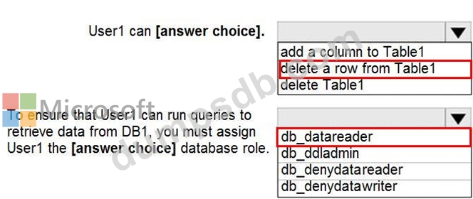 You have a Microsoft SQL Server database named DB1 that contains a table named Table1.