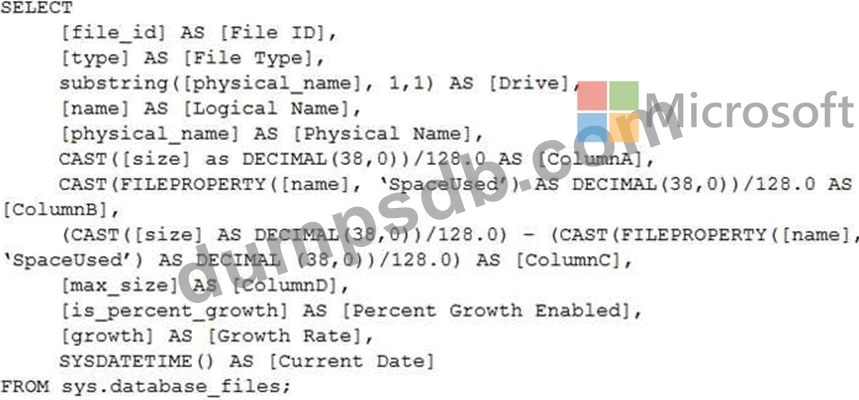 You have the following Transact-SQL query. Which column returned by the query represents the free space in each file?