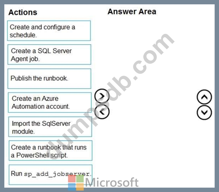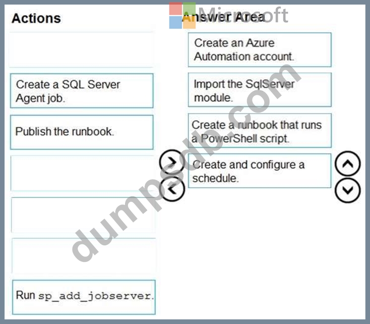 Which four actions should you perform in sequence? To answer, move the appropriate actions from the list of actions to the answer area and arrange them in the correct order.