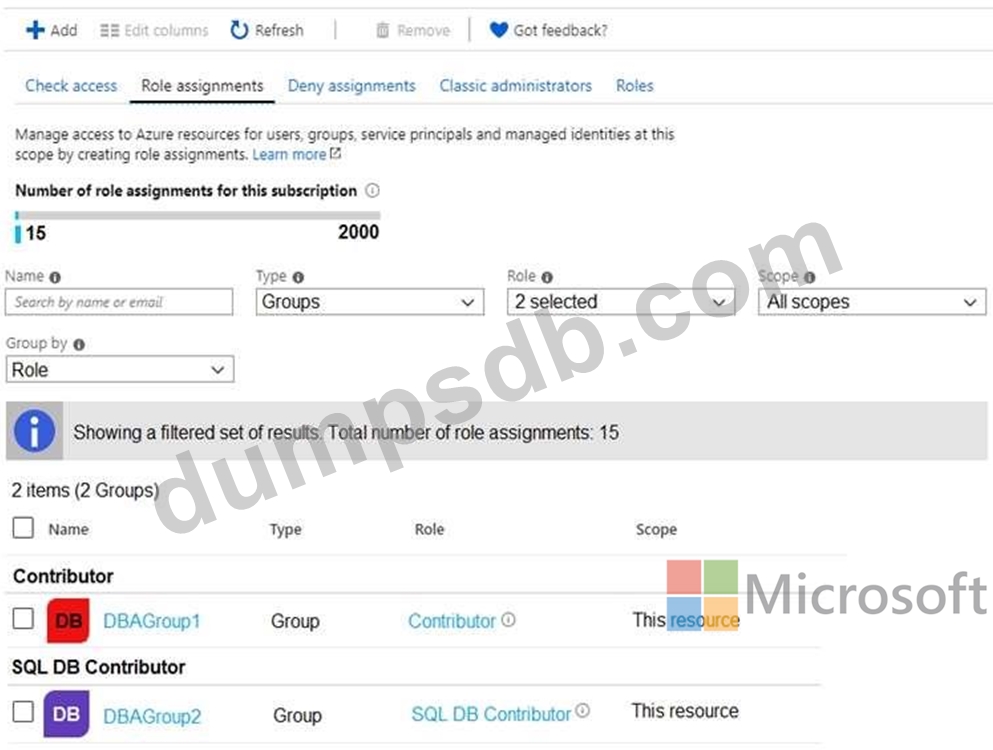 For each customer's Azure SQL Database server, you plan to assign the roles shown in the following exhibit.