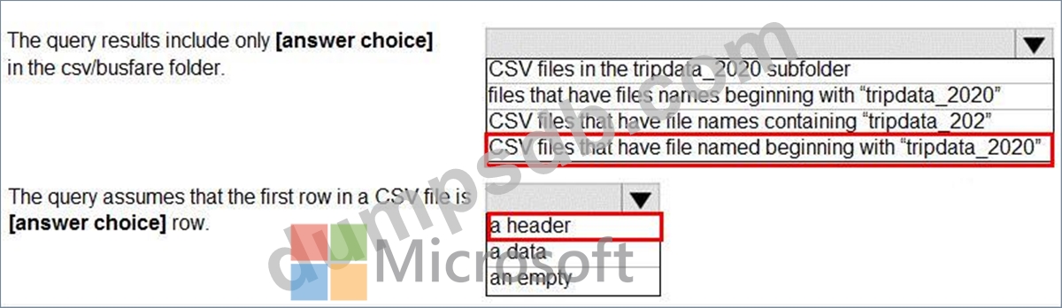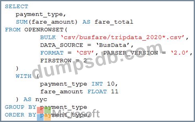 You are performing exploratory analysis of bus fare data in an Azure Data Lake Storage Gen2 account by using an Azure Synapse Analytics serverless SQL pool.