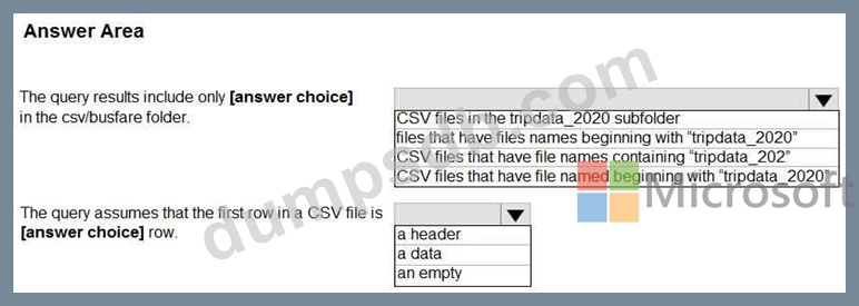 You are performing exploratory analysis of bus fare data in an Azure Data Lake Storage Gen2 account by using an Azure Synapse Analytics serverless SQL pool.