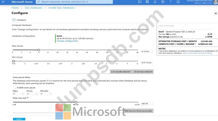 You are provisioning an Azure SQL database in the Azure portal as shown in the following exhibit.