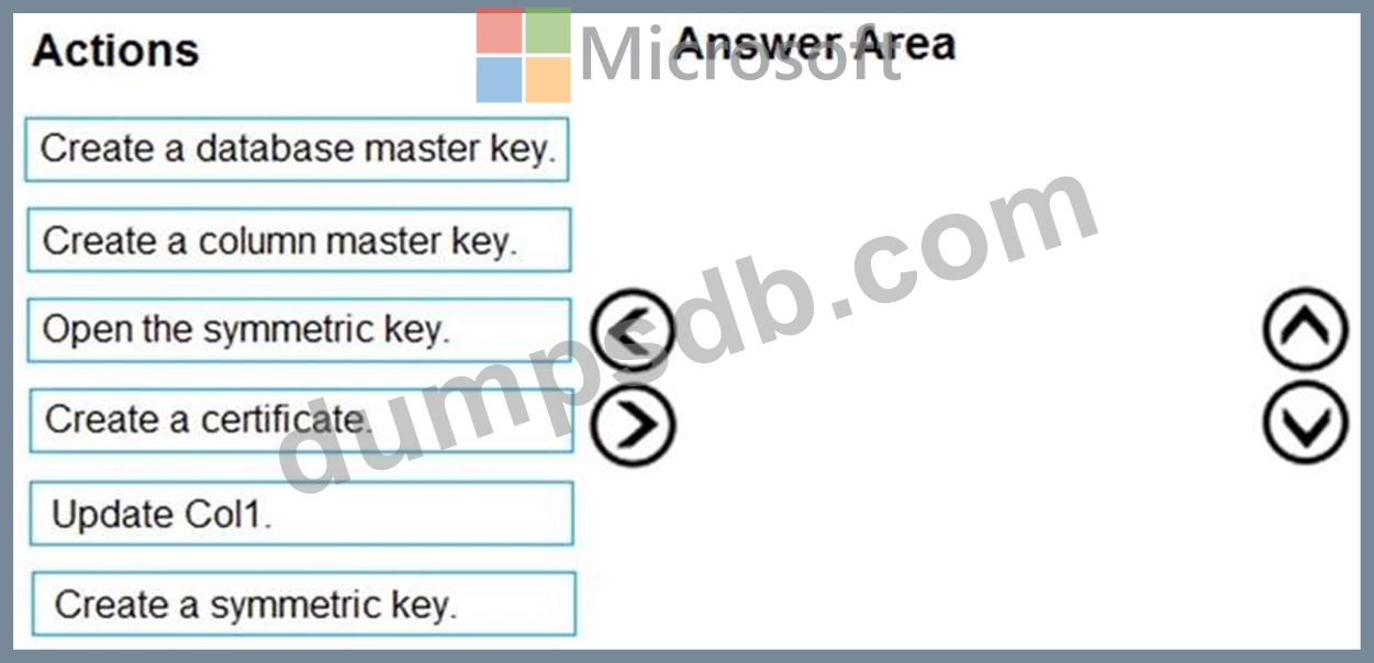 You have an Azure SQL database named DB1. DB1 contains a table that has a column named Col1.
