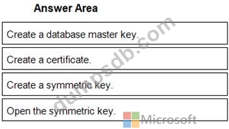 Which four actions should you perform for DB1 in sequence? To answer, move the appropriate actions from the list of actions to the answer area and arrange them in the correct order.