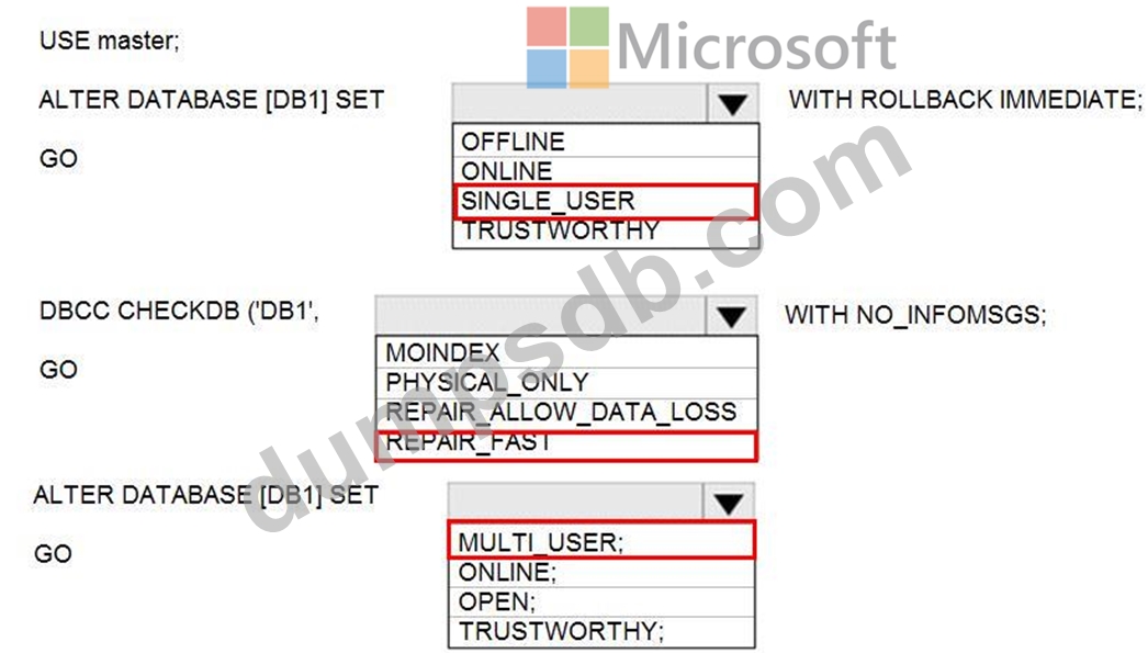 You have SQL Server on an Azure virtual machine that contains a database named DB1.