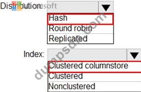 You need to recommend which distribution type and index type to use for the table. The solution must provide the fastest query performance.