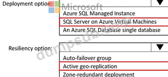You need to ensure that DB1 will support automatic failover without data loss if a datacenter fails. The solution must minimize costs.