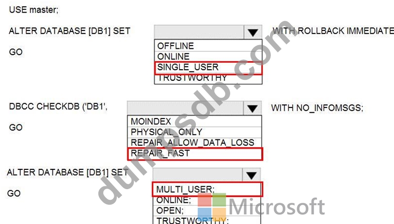 You have SQL Server on an Azure virtual machine that contains a database named DB1.
