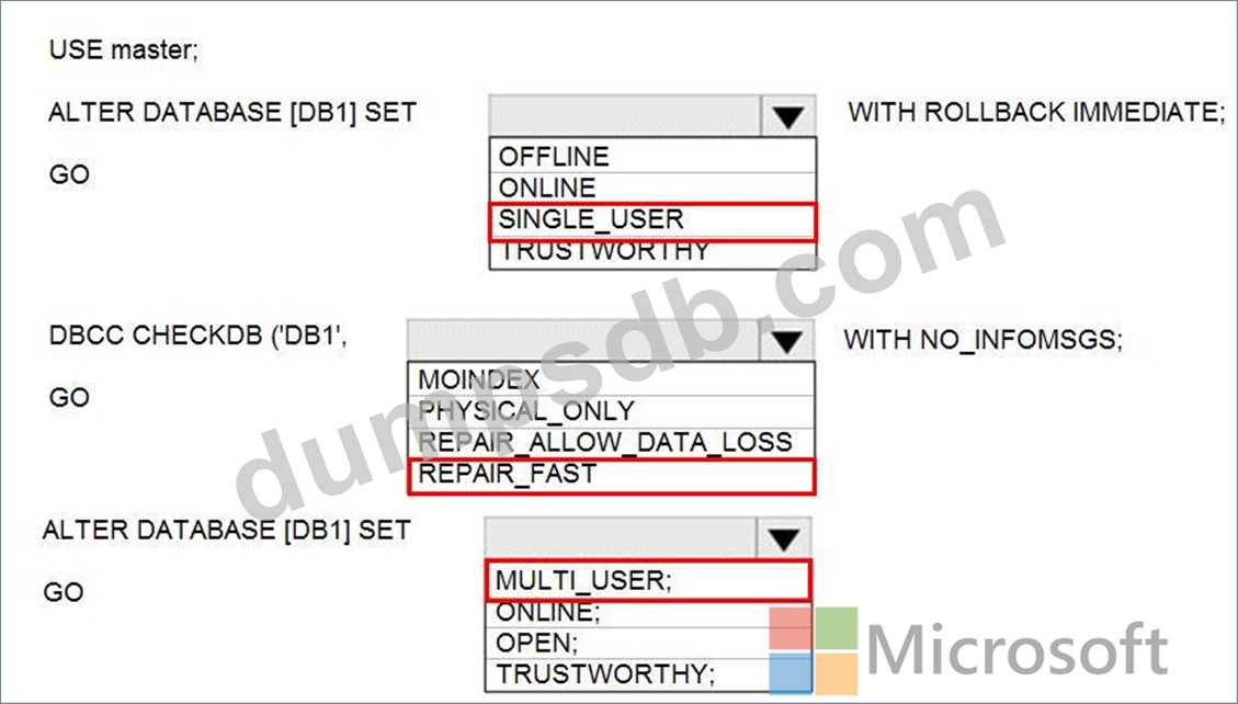You have SQL Server on an Azure virtual machine that contains a database named DB1.