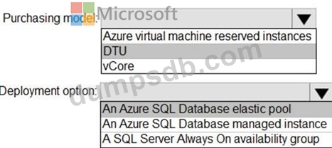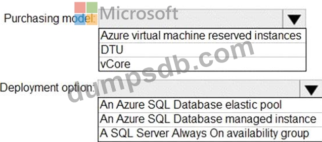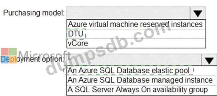 You need to recommend the appropriate purchasing model and deployment option for the 30 new databases.