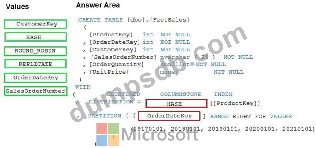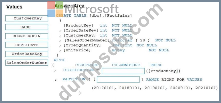 You plan to create a table in an Azure Synapse Analytics dedicated SQL pool.