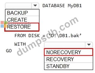 You have two Azure virtual machines named VM1 and VM2 that run Windows Server 2019. VM1 and VM2 each host a default Microsoft SQL Server 2019 instance. VM1 contains a database named DB1 that is backed up to a file named D:\DB1.bak.