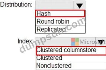 You need to recommend which distribution type and index type to use for the table. The solution must provide the fastest query performance.