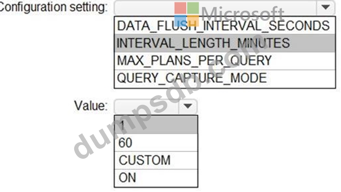 Which configuration setting should you modify and which value should you configure? To answer, select the appropriate options in the answer area.