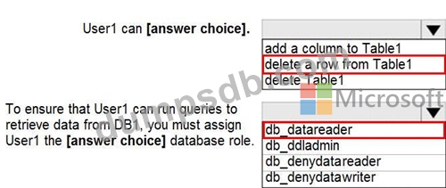 You have a Microsoft SQL Server database named DB1 that contains a table named Table1.