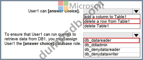 You have a Microsoft SQL Server database named DB1 that contains a table named Table1.