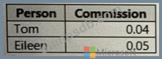 A sample of the data in the Commission table is shown in the following table.