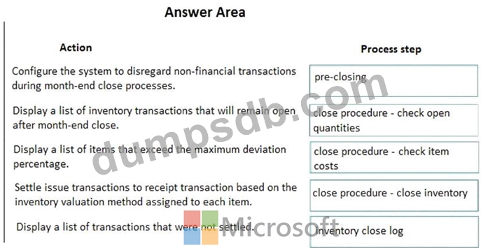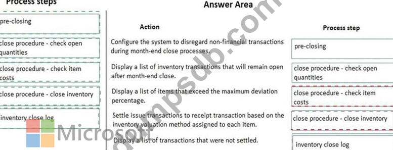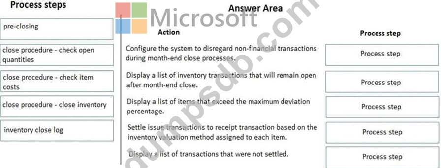 At which process steps should you perform the actions? To answer, drag the appropriate process steps to the appropriate actions. Each process step may be used once, more than once, or not at all. You may need to drag the split bar between panes or scroll to view content.
