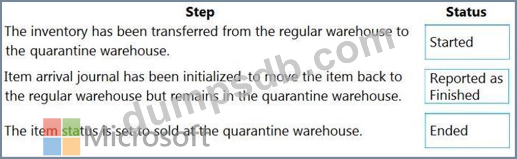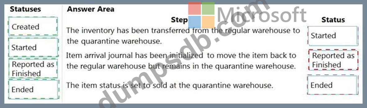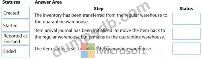 What is the status of the orders based on the location of the item? To answer, drag the appropriate statuses to the correct steps. Each status may be used once, more than once, or not at all. You may need to drag the split bar between panes or scroll to view content.