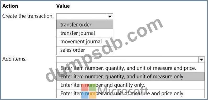 A company must ship product from one warehouse, receive it in another, and account for the inventory. It will take two days for the shipment to travel between locations.