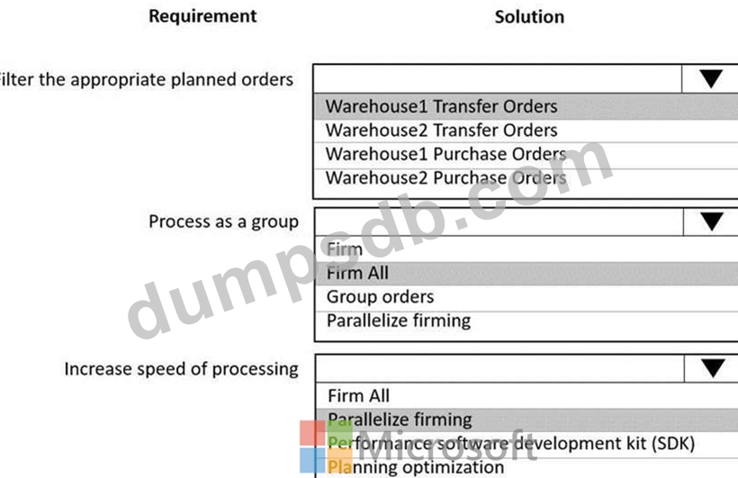 A company uses Dynamics 365 Supply Chain Management. There are two warehouses. All inventory is purchased into Warehouse1 and transferred to Warehouse2 based on replenishment rules.