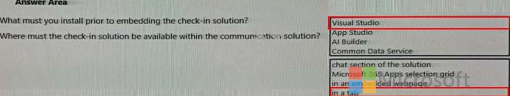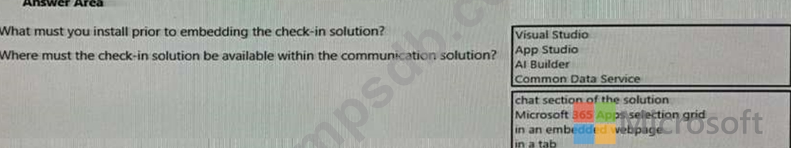 You need to embedded the check-in solution into the communication solution. To answer, select the appropriate options in the answer area.