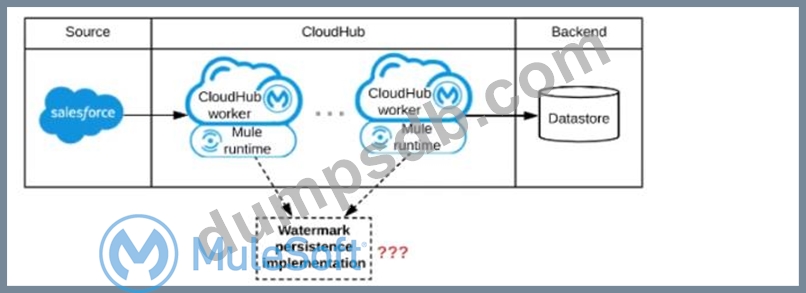 A Mule application is being designed to be deployed to several CIoudHub workers. The Mule application's integration logic is to replicate changed Accounts from Satesforce to a backend system every 5 minutes.