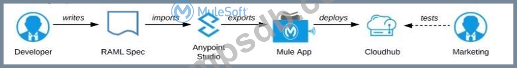 C) Use Anypoint Studio to Implement the API as a Mule application, then deploy that API implementation to CloudHub and ask the Marketing Department to interact with it