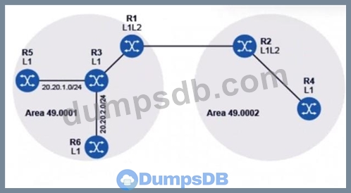 In the IS-IS network shown, router R1 has been configured to summarize subnetworks 20.20.1.0/24 and 20.20.2.0/24 as 20.20.0.0/16. Which routers' routing tables will be reduced, compared to their routing tables before the summarization?