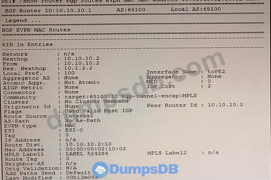 Exam Name: | Nokia Ethernet Virtual Private Network Services |